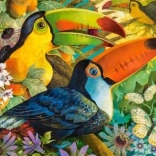 Az „Interlude” nevű elegáns kirakó természetközeli motívuma a trópusi erdő élénk színeit és a tukanok határozott sziluettjeit hozza el. A 3000 precízen vágott darabnak köszönhetően olyan kihívás, amely örömet okoz a tapasztalt puzzle-rajongóknak és az ambiciózus kezdőknek egyaránt.