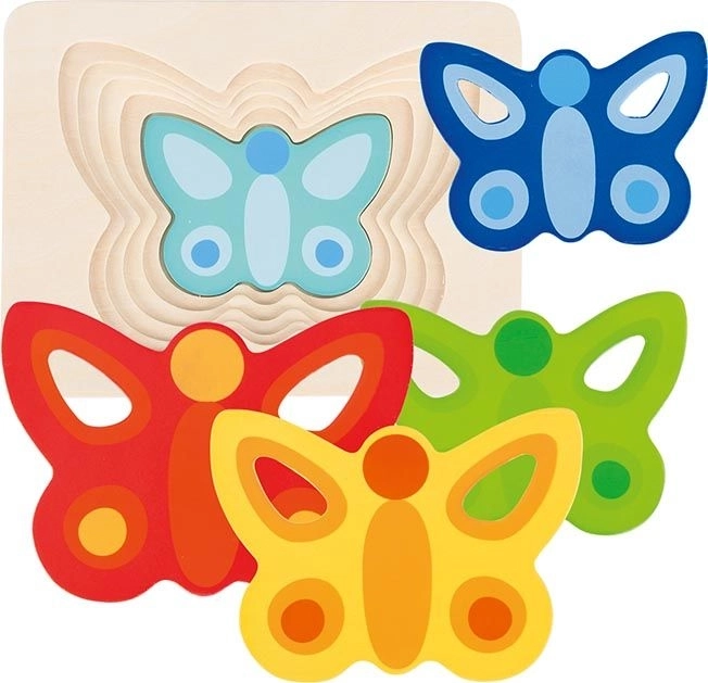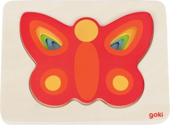 Fedezze fel a GOKI márka színes pillangós, játékos, többrétegű kirakóját. A gyerekek a rakosgatás közben nemcsak jól szórakoznak, hanem fejlesztik a finommotorikát, a színfelismerést és a logikus gondolkodást is. Öt darabból áll, és minden rétegbe csak egyetlen pillangó illik, ami támogatja a türelmet és a fokozatos tanulást.