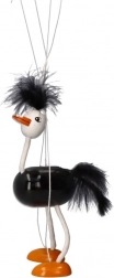 A marionett fekete törzzsel, fehér lábakkal és fejjel rendelkezik, kifejező narancssárga lábakkal. Kellemes és puha részletek a fejen és a farokon fokozzák játékos megjelenését. A gyerekek imádni fogják, ahogyan ez a strucc mozog és milyen könnyen irányítható.