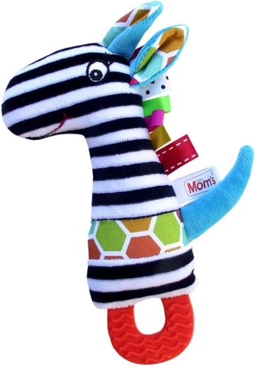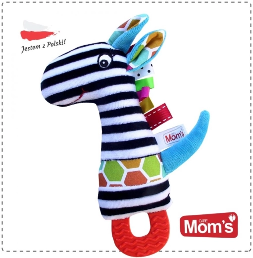 A játék korai fejlesztési szakértők által tervezett, és biztonságos, tanúsított anyagokból készült. A változatos textúrák, színes címkék és a kellemes sípoló hang ösztönzik a gyermek természetes kíváncsiságát, hozzájárulva az érzékelési benyomások integrációjához. A szilikon rész használat előtt rövid időre hűtőbe tehető a még nagyobb megkönnyebbülésért.