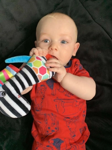 A markáns kontrasztos minták és a különféle anyagok támogatják a látás és a tapintás fejlődését. A finom sípoló hang tovább fejleszti a hallást és az ok-okozati összefüggések megértését.