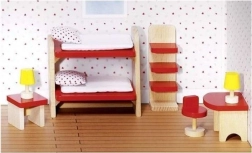 - Csomag tartalma: 11 darab bútor és kiegészítő (pl. emeletes ágy, asztal, székek, polc, lámpácskák)