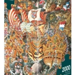 Trafalgari csata puzzle a híres karikaturista, Michael Ryba alkotásában, amely elrepít a történelem lenyűgöző pillanataiba gyönyörű grafikával. A csomag 2000 darabot tartalmaz és egy egyedi háromszög alakú dobozt, plakáttal útmutatóként az összerakáshoz.