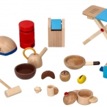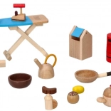 Ezzel a csodálatos 19 darabból álló fa játék készlettel a gyerekek órákig tartó szórakozást élvezhetnek otthoni környezetben. A készlet különféle háztartási készülékeket tartalmaz, amelyek segítik a gyermeki fejlődést és a világ megismerését. A csomag része a kávéfőző, kancsó, porszívó, vasalódeszka és még sok más. Minden darab gondosan kidolgozott, figyelembe véve a biztonságot és az esztétikát.