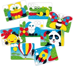 Quercetti Mozaika Pixel Junior egy oktatójáték, amely segíti a koordináció és a finommotorikus készségek fejlesztését. A készlet színpompás gombokat és átlátszó táblát tartalmaz, amelyre 8 különböző mintakártya segítségével lehet mintákat kirakni, amelyek a tábla alá helyezhetőek.