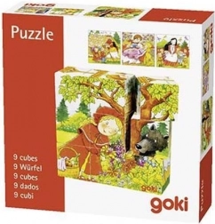 A Goki fa mesekockái örömteli kirakást és az első történetmesélést kínálják. A 9 kockából 6 színes jelenetet rakhatsz ki a kedvelt klasszikusokból – például Piroska, Hófehérke és a hét törpe, Csipkerózsika, Jancsi és Juliska vagy Hamupipőke. Minden kocka megforgatásával új darabja tárul fel a képnek, a gyerekek pedig gyakorolják a logikát és a türelmet.
