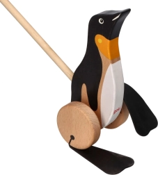 Szórakoztató és oktató fa húzós játék pingvin a Goki márkától, ideális a kis felfedezők számára. Fejleszti a motoros készségeket és támogatja az aktív mozgást.