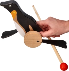 A fa húzós játék pingvin formájú, örömet okoz és játékos módon fejleszti a gyermekeket.