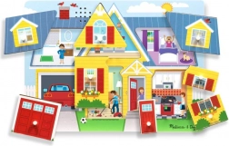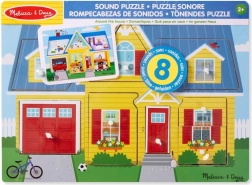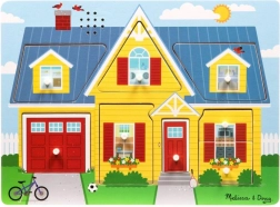 Ez a fa, hangot adó kirakó egy színes házat mutat be, tele felfedeznivalóval. A helyes behelyezés után a megfelelő hang szólal meg, ami ismételt próbálkozásra ösztönzi a gyerekeket, és segít megérteni az ok-okozati összefüggéseket. Az áttekinthető illusztrációk révén közben megismerik a háztartás elemeit is.