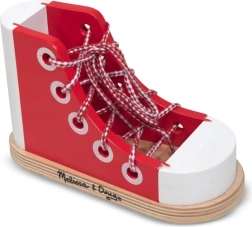 A MELISSA & DOUG fa fűzős cipő segít a 3 évesnél idősebb gyerekeknek elsajátítani egy fontos készséget – a cipők önálló megkötését. A stabil fa konstrukciónak, a több fűzőlyuknak és a textil cipőfűzőnek köszönhetően a gyerekek különféle fűzési módokat és csomókat gyakorolhatnak, az egyszerű átfűzéstől a masniig.