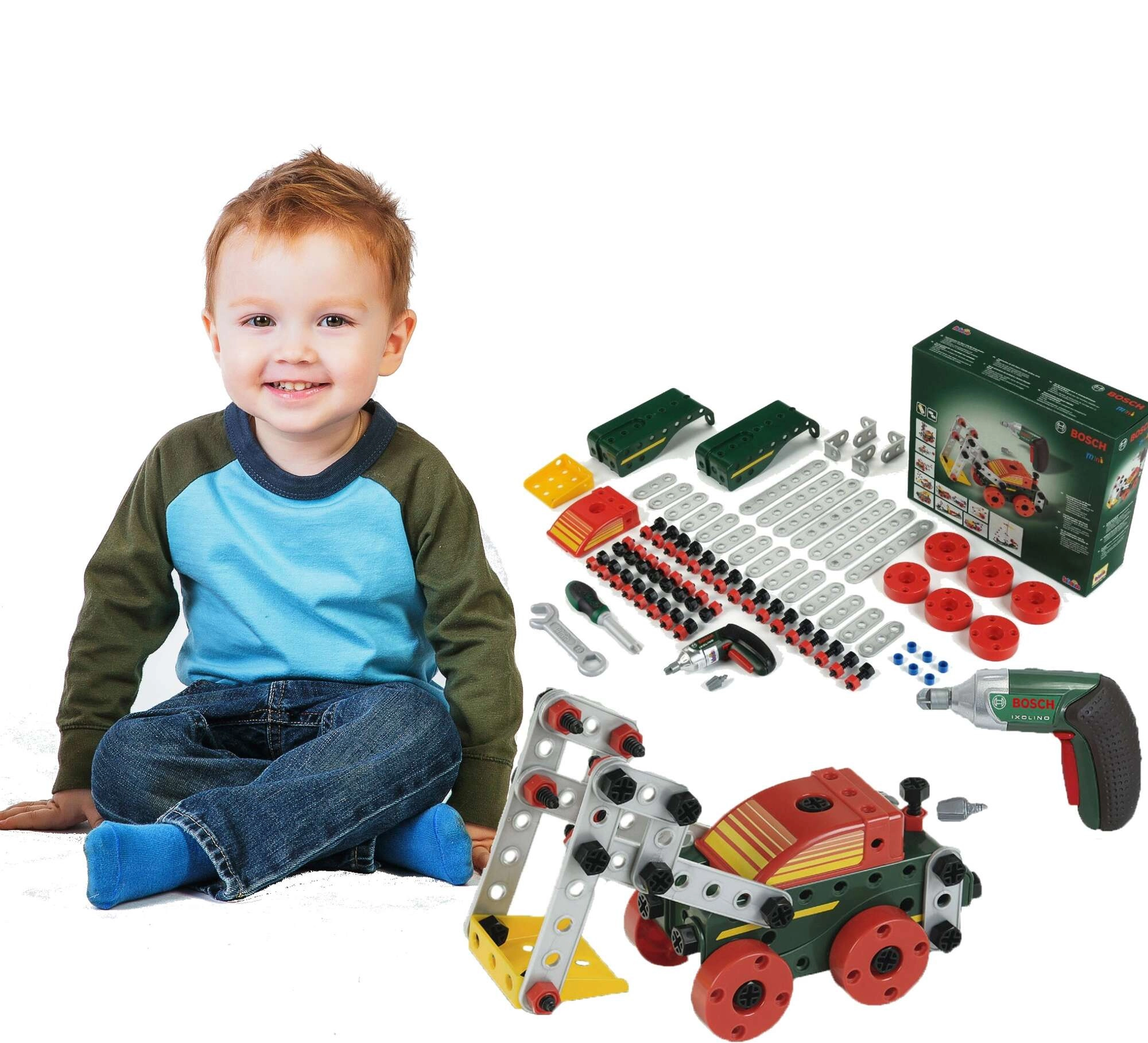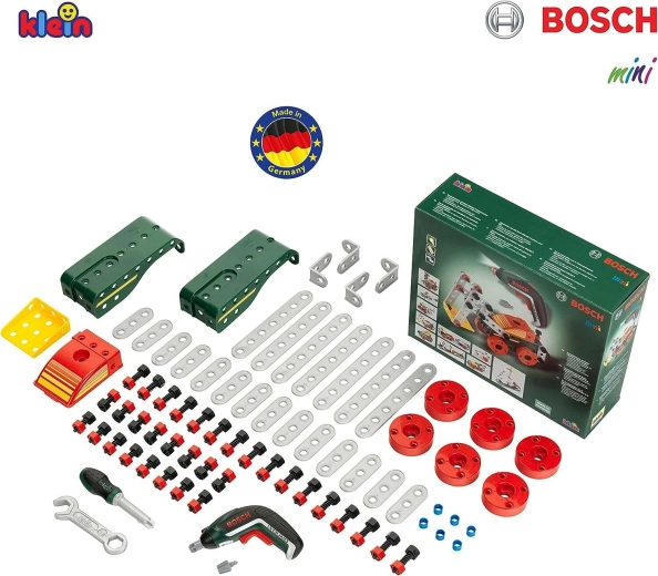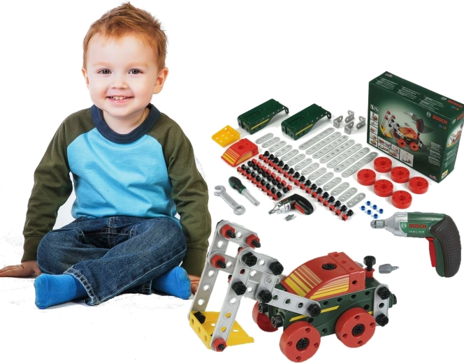 Ez a gazdagon felszerelt készlet a kreatív építést ötvözi a valódi szerszámokkal való játék élményével. A gyerekek a BOSCH Ixolino gyerek akkus csavarozóval csavarokat hajthatnak be, elemeket kapcsolhatnak össze, saját szerkezeteket építhetnek, vagy követhetik a mellékelt útmutatókat 11 járműmodellhez.