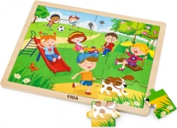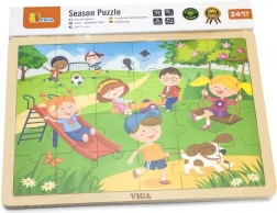 A VIGA fa kirakó tavaszi park motívummal játékos formában segíti a tanulást. A masszív fa elemeknek köszönhetően könnyű megfogni és összerakni, miközben fejleszti a szem–kéz koordinációt és a térbeli képzelőerőt.