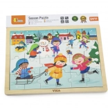 Ez a téli képes fa kirakó remek választás 24 hónapos kortól. Az egyes darabok mérete a gyerekek kezéhez igazodik, a masszív kivitel pedig hosszú élettartamot biztosít. A 24 darabnak köszönhetően a gyerekek gyakorolják a koncentrációt, és örömüket lelik a befejezett képben.