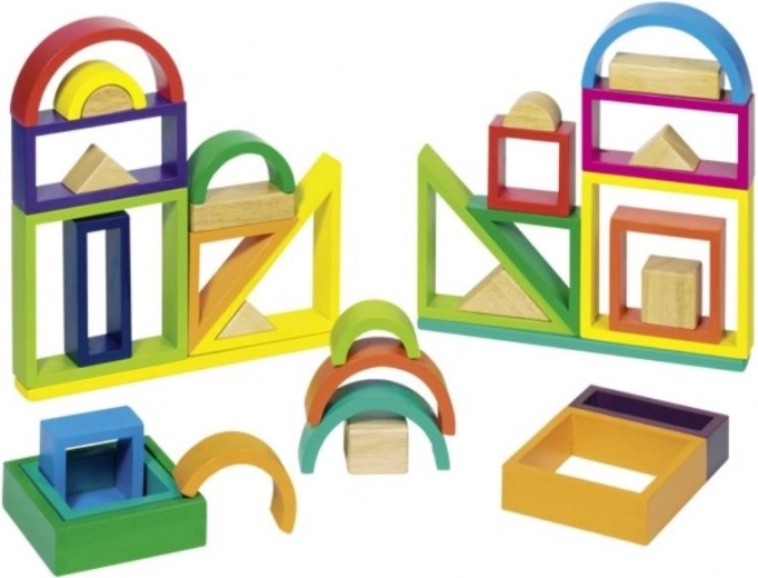 A Goki Szivárvány fa építőkészlet végtelen építési és játékos tanulási lehetőséget kínál a gyerekeknek. A 38, kiváló minőségű, élénk színű elemmel könnyedén hozhatnak létre egyedi kombinációkat, amelyek serkentik a fantáziát és a vizuális észlelést. A változatos formák és színek természetes módon ösztönzik a kísérletezést és a felfedezést.