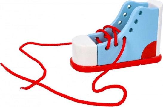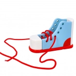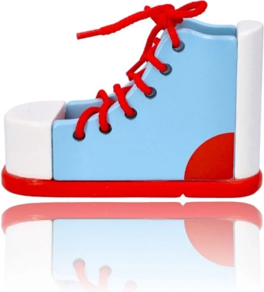 Ez a fa fűzős cipő remek segítőtárs a gyerekek önállóság felé vezető útján. Segíti a finommotorika fejlesztését, miközben gyakorlati készségekre, például a cipőfűzésre tanít. A cipő minőségi fából készült, és biztonságos a gyerekek számára.