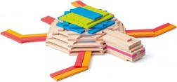 A fával való játék támogatja a finommotorikát, a koordinációt és a térbeli gondolkodást. Ideális önálló és közös alkotáshoz.
