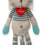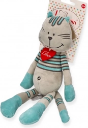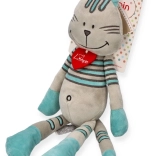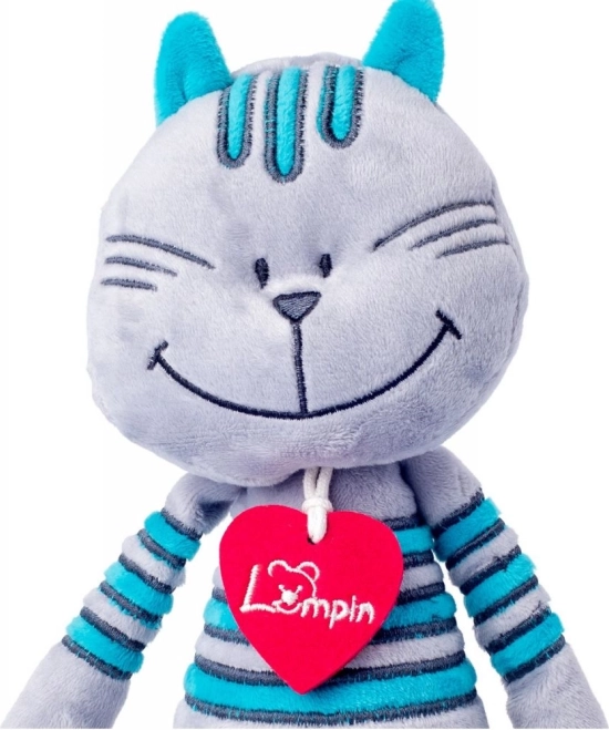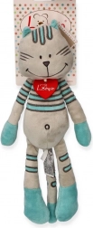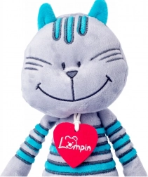 A bájos plüss kandúr, Lewis Ausztriából érkezik, és mindenkit elvarázsol szürke bundájával és türkiz csíkjaival. Hosszú mancsai vannak, széles mosolya, a nyakán pedig díszes filc szívecske. Nagyon puha tapintású, és már újszülött kortól alkalmas. A könnyű tisztítás érdekében a játék kézzel mosható 30 °C-on.