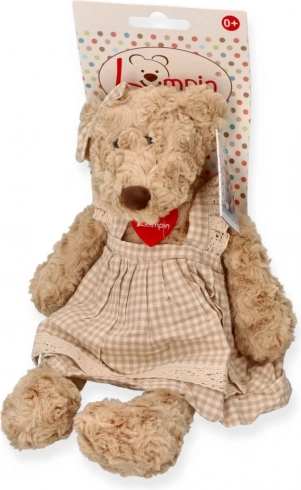 A bájos Lumpinka plüss mackó bézs kockás ruhában és masnival ideális társ összebújáshoz, valamint gyönyörű dísz a gyerekszobába. Puha, selymes szőrzete ölelésre hív, a 0+ biztonságos kivitel pedig a legkisebbeket is örömmel tölti el.
