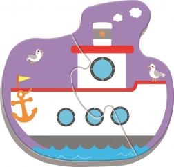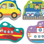 Minden puzzle más közlekedési eszközt ábrázol – autó, vonat, repülőgép és hajó – és támogatja a kreatív játékot.