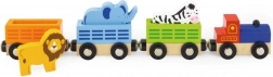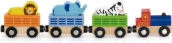 Az állatkertes fa vonat ideális kiegészítő a gyerek vonatkészletekhez, de önálló játékként is megállja a helyét. A mozdony és három színes vagon – kisoroszlánnal, elefánttal és zebraval – mágnesekkel kapcsolódik, így könnyű a kezelés, a gyerekek pedig kedvük szerint rakhatják össze és választhatják szét a szerelvényt.