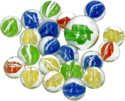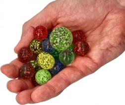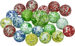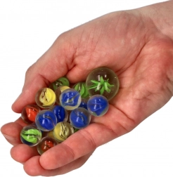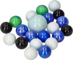 Az üveggolyók klasszikus játékok, amelyek sosem okoznak csalódást! Ezzel a készlettel 21 különböző dizájnú golyót kap. A golyók lehetnek egyszínűek, átlátszóak belső színes mintákkal vagy tarkabarka pöttyökkel, amelyek egyedi megjelenést kölcsönöznek nekik. Sokszínűségük révén mind gyerekeknek játékhoz, mind dekorációként is alkalmasak.