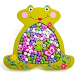 A lehetőségek valóban szélesek – az ékszerkészítéstől, a gyöngyök válogatásán és mintákba rendezésén át egészen a gyöngyök más kreatív kézműves tevékenységekben való felhasználásáig. Minden elem biztonságos, CE tanúsítvánnyal rendelkező anyagokból készült, amely garantálja a biztonságos játékot a legkisebbek számára is. A béka alakú doboz a gyöngyök felhasználása után gyönyörű képkeretként szolgál, egyszerű, falra akasztható felfüggesztéssel.