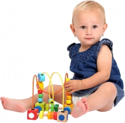 A színes gyöngyök és különböző formák által nyújtott vizuális stimuláció szórakoztató és leköti a gyerekeket.