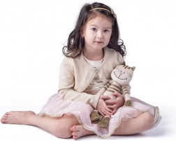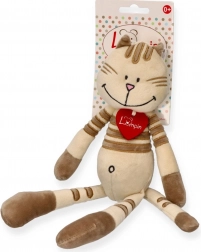 Ez a puha plüss cica kellemes bézs színben, barna csíkokkal barátságos megjelenésével és hosszú végtagjaival örömet szerez a gyerekeknek – kiválóan lehet ölelni. Könnyű kialakításának köszönhetően a legkisebb kezek is könnyen tartják, és kedvelt társsá válik elalváshoz és játékhoz egyaránt.