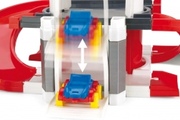 A készlet tartalmaz egy háromszintes garázst lifttel, 2,3 m hosszú külső útrendszert, két Kid Cars autót, matricákat és dekorációkat, mint például táblák, fák figurák és korlátok. A színes és könnyű szerkezet órákon át tartó szórakozást biztosít, és fejleszti a gyerekek különböző képességeit.