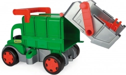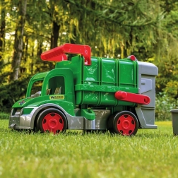A WADER GIGANT FARMER kukásautó valósághű várostakarítási játékélményt nyújt a gyerekeknek. A mozgatható emelőnek köszönhetően könnyen kiüríthető a mellékelt konténer, a nyitható hátsó ajtó megkönnyíti a rakodást, a szabadon futó kerekek pedig egyenletes haladást biztosítanak. Akár 50 kg teherbírás teszi lehetővé, hogy a gyerekek ráüljenek az autóra és a praktikus felső fogantyúba kapaszkodjanak, míg az első vonószem a húzást vagy csatlakoztatást egy másik járműhöz vagy kötélhez teszi lehetővé.