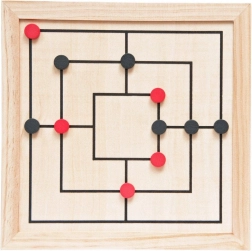 Egyszerű szabályok, izgalmas játszmák. Különböző színű fa korongok a könnyű tájékozódásért.