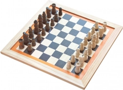 Kontrasztos sakktábla és teljes kezdőkészletet alkotó fa figurák. Ideális a stratégia és a koncentráció fejlesztéséhez.