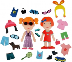 Változatos ruhák és kiegészítők, amelyekkel a gyerekek új kombinációkat állíthatnak össze, és saját történeteket alkothatnak közvetlenül a kádban.