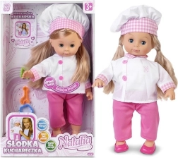 Natalia Édes Konyha Baba, 42 cm-es méretben, bájos szakácsruhában öltözött és lenyűgöző társ lesz minden kis szakács számára. Megtanítja a gyerekeket nem csak a főzés művészetére, de mond egy verset és 2 dalt énekel.