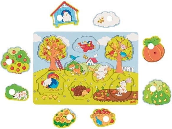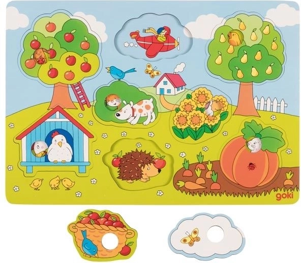 Fedezze fel a szórakozást és a tanulást a Goki fa kirakóval A kertben, amely támogatja gyermeke növekedését és fejlődését. A játék úgy van tervezve, hogy: