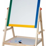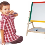Kétszemélyes gyermek tábla krétás és mágneses felülettel, amely végtelen kreatív és oktatási lehetőségeket kínál. Vidám kialakítása vonzó kiegészítője lesz a gyerekszobának.