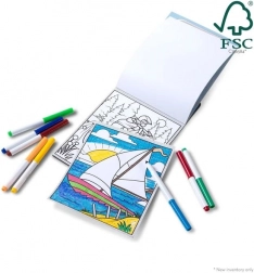 A csomag része a színes filctoll-készlet, amely a blokkhoz van rögzítve, így bárhol és bármikor lehet színezni – tökéletes utazáshoz.