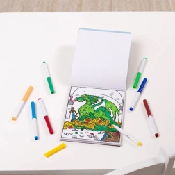 Ez a kreatív szett egyesíti a színező blokkot és a színes filctollakat. A gyerekek elmerülhetnek a kalózok, sárkányok, űrhajósok vagy erdei jelenetek világában, és fantáziájuk szerint színezhetnek ki minden apró részletet. A 15 × 25 cm-es kompakt méret megkönnyíti a fogást a kis kezeknek, és tökéletes útitárssá teszi a színezőt.