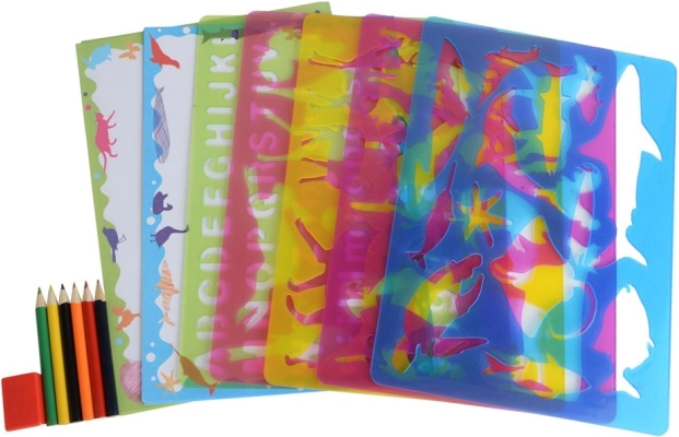 A Buddy & Barney állatos motívumokkal ellátott nagy sablonkészlete tökéletes kreatív eszköz gyerekek számára. Mindent tartalmaz, ami a rajzoláshoz szükséges, és kiválóan hordozható a praktikus fiókos csomagolásnak köszönhetően.