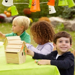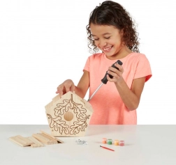A készlet lehetővé teszi a gyerekek számára, hogy önállóan összeállítsák és feldíszítsék a madárodút a saját fantáziájuk szerint.