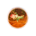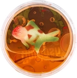 Ez az átlátszó nyálka egy kis halat tartalmaz, amely élőnek tűnik. Kompakt dobozban van elhelyezve, amely könnyen elfér az asztalon, szekrényben vagy polcon.