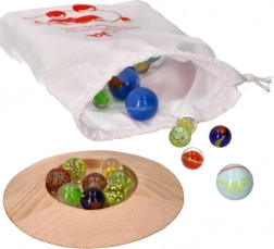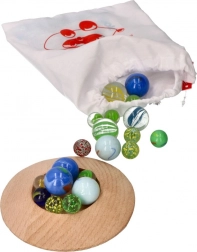 Vidd magaddal kedvenc üveggolyóidat bárhová a praktikus pamut tasakkal. A készlet 31 színes üveggolyót és egy fa mélyedést tartalmaz, így ideális választás beltéri játékhoz. Támogatja a kreativitást, és fejleszti a gyerekek finommotorikáját. Ki lesz a legügyesebb, és ki juttatja a legtöbb golyót a mélyedésbe?