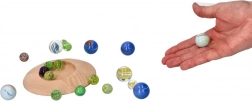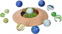 A fa mélyedésnek köszönhetően bárhol, beltérben is játszhatsz üveggolyóval.