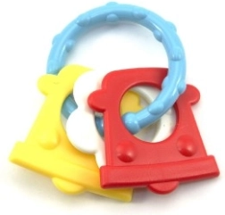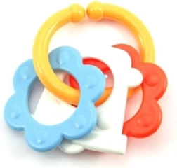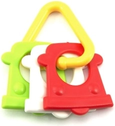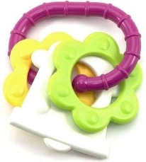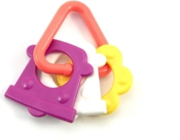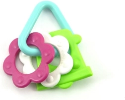 A színes műanyag rágókánk kifejezetten úgy lett tervezve, hogy kis kezek könnyen meg tudják fogni bármelyik formáját. A változatosságának köszönhetően babájának stimulálja az érzékeit és az ínyét is.