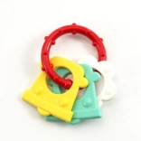 A rágóka különböző formákat és színeket tartalmaz, ami elősegíti a gyermek vizuális és motorikus képességeinek fejlődését.