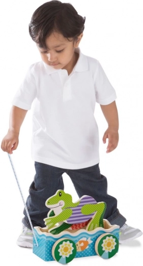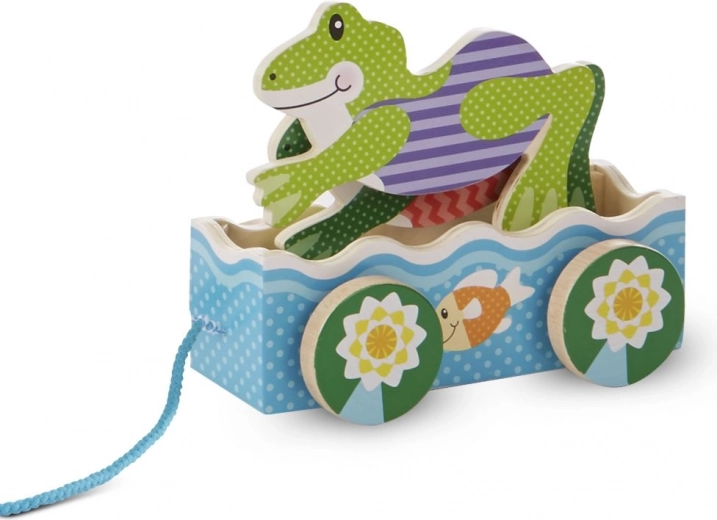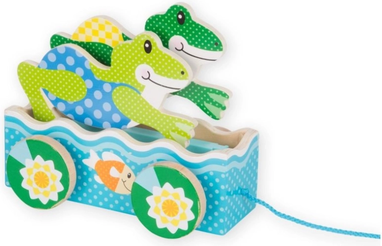 A béka alakú, fából készült húzogatós játék tökéletes a szórakozáshoz és a gyerekek finommotorikus készségeinek fejlesztéséhez. A 64 cm hosszú zsinór ideális az aktív játékhoz.