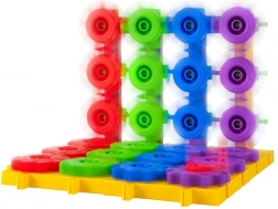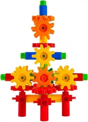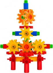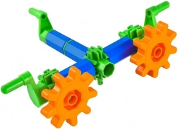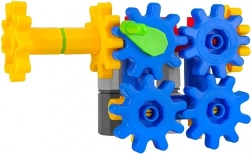 A készlet speciális fogaskerekeket tartalmaz, amelyek lehetővé teszik a struktúrák forgását és mozgását, fejlesztve ezzel a mechanikai készségeket.