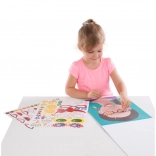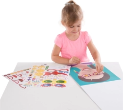 A nagyobb matricák felragasztása erősíti a csippentőfogást és a szem–kéz koordinációt, ugyanakkor felébreszti a fantáziát és a történetmesélést.