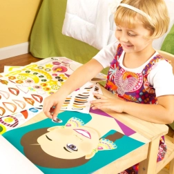 A készlet ideális otthoni alkotáshoz, óvodákba és utazáshoz is. Támogatja a fantázia és a finommotorika fejlődését, és segít a gyerekeknek megismerni az érzelmeket és a mimikát. A csomagban 20 színes arcsablont és 5 ívnyi, arcvonásokkal és kiegészítőkkel teli matricát találsz.
