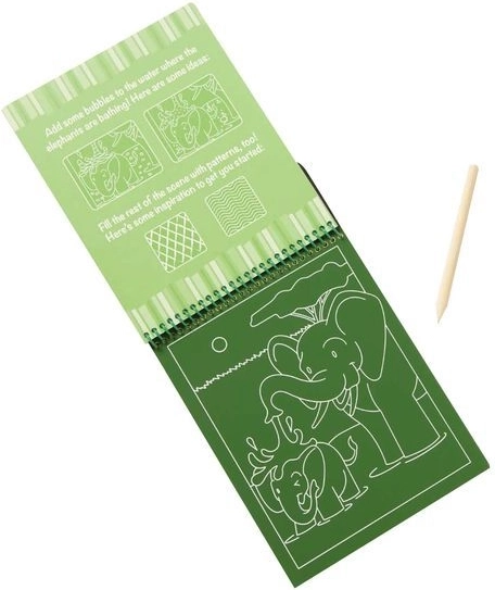 A Safari kaparós füzet ideális tevékenység alkotni szerető gyerekeknek. Minden oldal egy színes jelenetet rejt, amely a felső réteg óvatos lekaparásával tárul fel a fa stylusszal. Kompakt mérete miatt tökéletes autóba, nyaralásra vagy váróterembe.